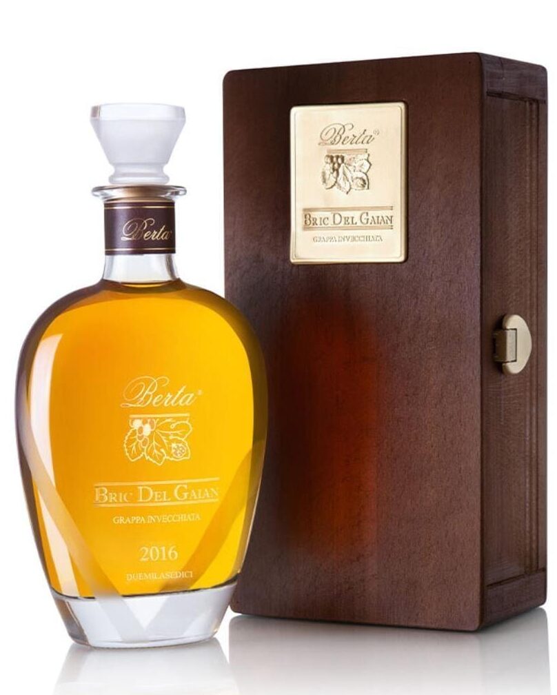 Berta Grappa Bric del Gaian, di colore giallo oro molto intenso, brillante e trasparente. Un tipico distillato di uve moscato della tradizione italiana e soprattutto piemontese. Il Piemonte rappresenta la zona storicamente più importante per la coltivazione delle uve di Moscato.