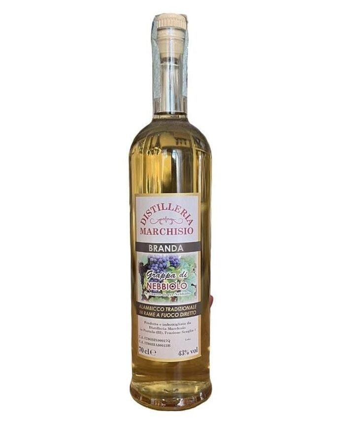 Marchisio Grappa di Nebbiolo barricata, di colore giallo oro, brillante e trasparente. Un tipico distillato di uve nebbiolo della tradizione italiana e soprattutto piemontese. Il Piemonte rappresenta la zona storicamente più importante per la coltivazione delle uve di Nebbiolo.