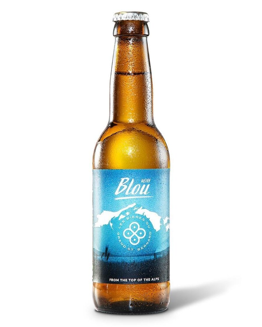 Biere Grand St Bernard Birra Bianca Blou è prodotta con acqua della Valle del Gran San Bernardo, malto chiaro pilsner e malto caramellato provenienti dalla Germania; malto di segale e malto di frumento, luppolo Perle coltivato nel Hallertau in Germania e lievito ad alta fermentazione.