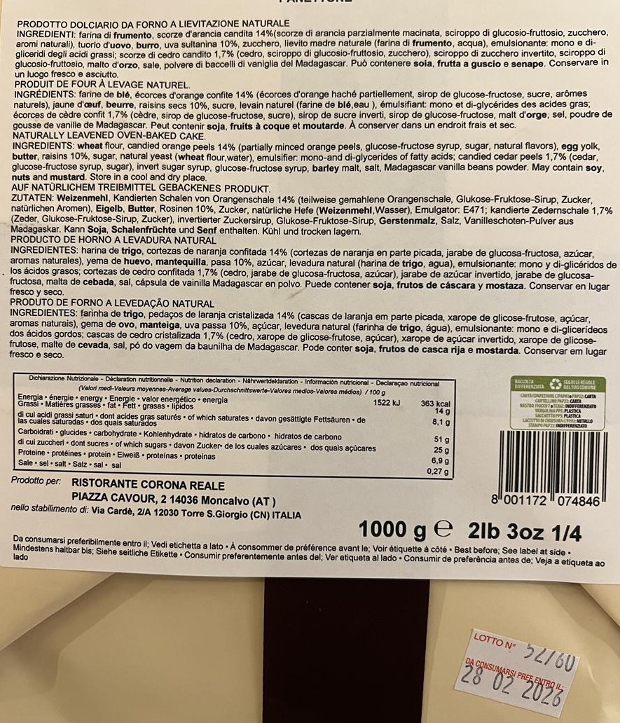 Corona Reale Panettone classico 1 kg Sorprendente