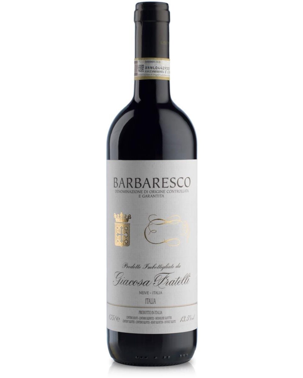 Fratelli Giacosa Barbaresco è un vino rosso secco, da uve nebbiolo, delicato dal colore granato, profumo intenso, speziato e austero, con note di frutti rossi e sentori di rosa. Di sapore deciso, armonico, con una fitta trama tannica che conferisce una beva elegante e persistente. Proveniente da una accurata selezione delle uve nei vigneti dell’azienda siti nelle Langhe, zona di origine Neive, il Barbaresco macera alcune settimane sulle sue bucce.