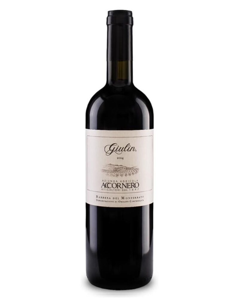 Accornero Barbera superiore Giulin è un vino rosso, secco, da uve Barbera, dal colore rubino, profumo fruttato e di buona armonia. Proveniente da una accurata selezione delle uve nei vigneti dell’azienda siti nel Monferrato, il Giulin macera alcune settimane sulle sue bucce.